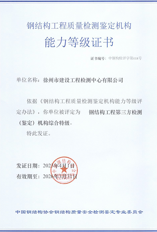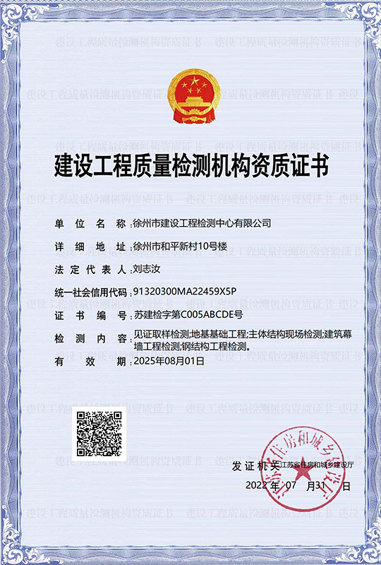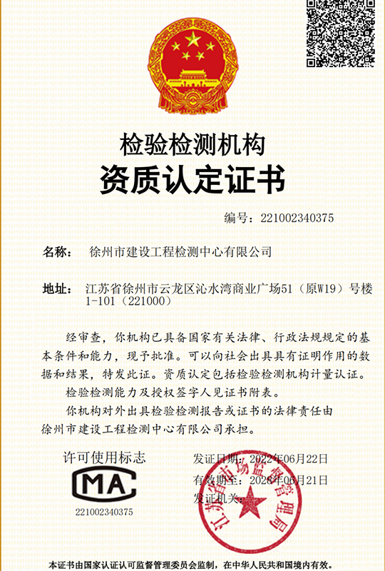 徐州市建設工程檢測中心有限公司(以下簡稱徐建檢測公司)是徐州市產城發(fā)展集團有限公司(以下簡稱產城集團)的全資子公司。徐建檢測公司前身為徐州市建設工程檢測中心,2018年事轉企改制,2020年4月,完成轉企改制資產劃轉工作。 徐建檢測公司是集檢測、檢驗、鑒定、咨詢等技術服務為一體、具有獨立法人資質的綜合性第三方服務機構。公司主要從事建設工程領域相關工程質量檢測及技術咨詢服務,業務覆蓋地基基礎、建筑材料、建筑結構、鋼結構工程、市政工程、綠色建筑節(jié)能工程、建筑安全與施工設備、建筑防水、建筑水電、裝飾裝修、建筑物防雷、室內環(huán)境、房屋安全鑒定、城市軌道交通工程等專業領域。......